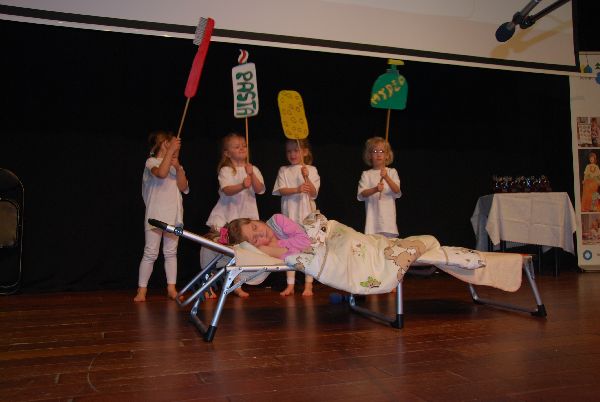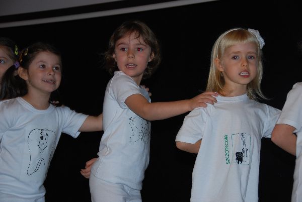 Drugi dzień zdrowotnej rywalizacji należał do pięciolatków, w tej kategorii bowiem zgłosiło się aż siedemnaście grup. Tym razem spotkaliśmy wesołe skrzaty i leniuszki-czyścioszki, pomogliśmy rozwiązać problem Oli i Tosi, które nie myły zębów, a także leniwej Klary i Wróżki Bolibrzuszki. Występujące dzieci udowodniły, że gimnastyka jest spoko, a mycie zębów nie boli. Aktorzy z Akademii Małych Odkrywców uświadomili nam, że jeśli nie będziemy się myć przed snem, będą nam się śniły straszne koszmary. Jury pełne nowej wiedzy na temat higieny nagrodziło miejscami następujące placówki: