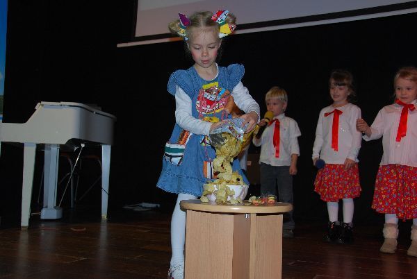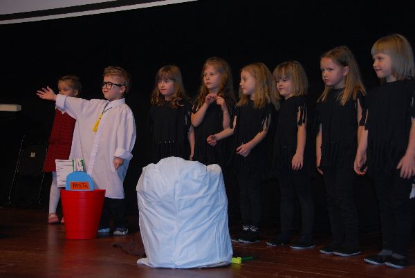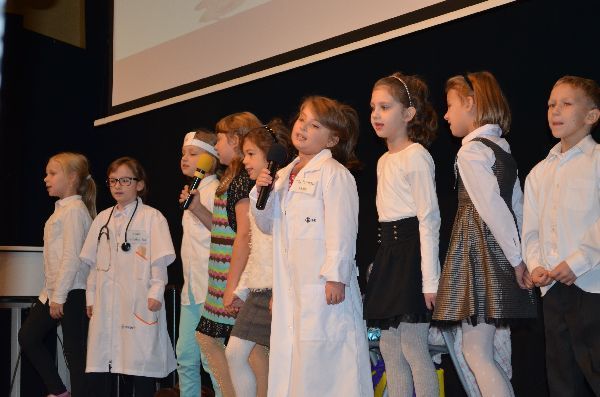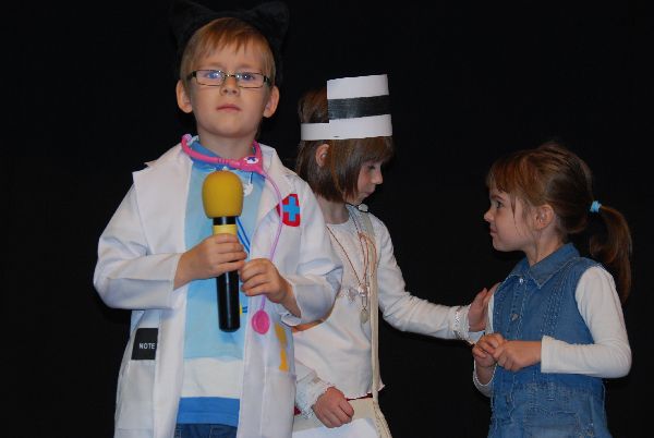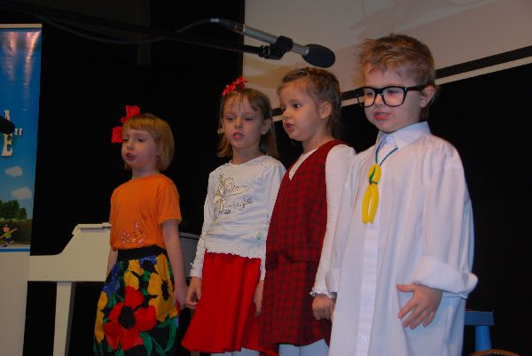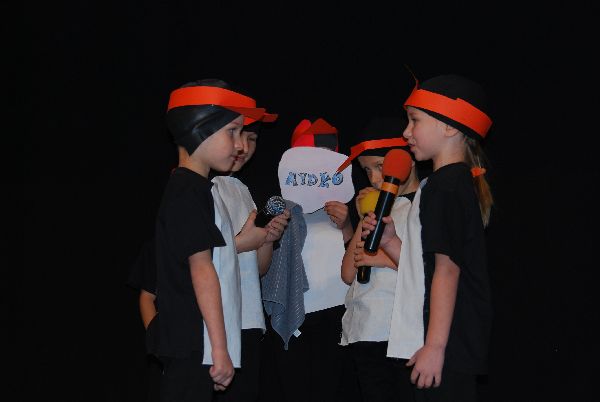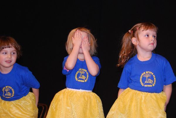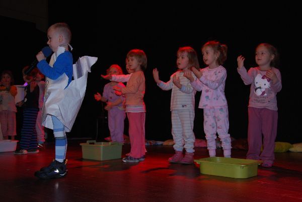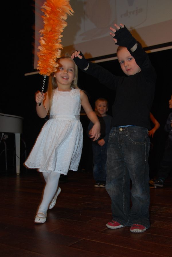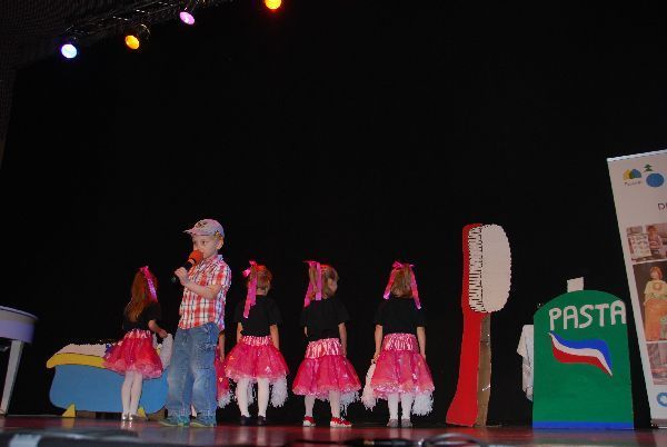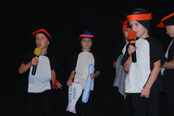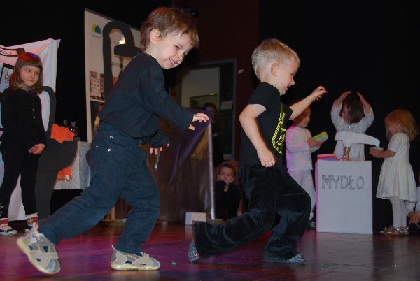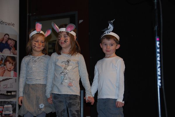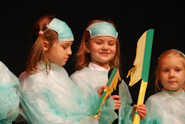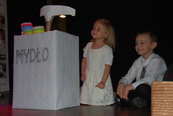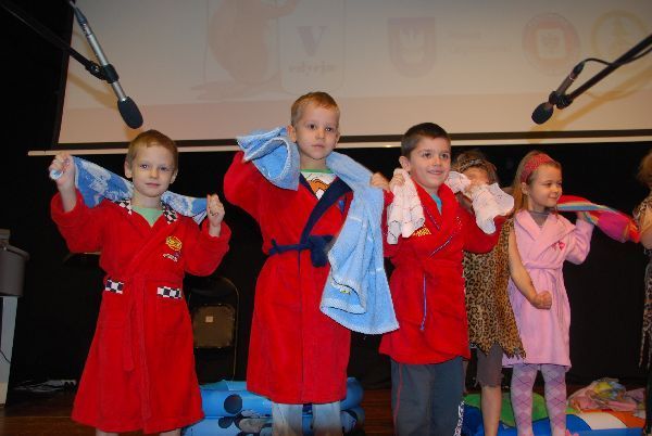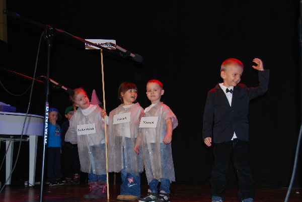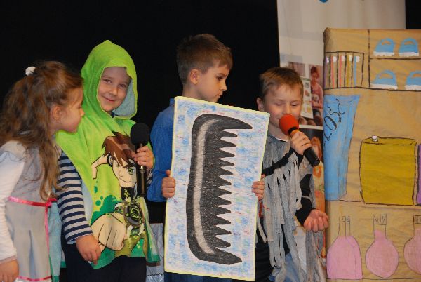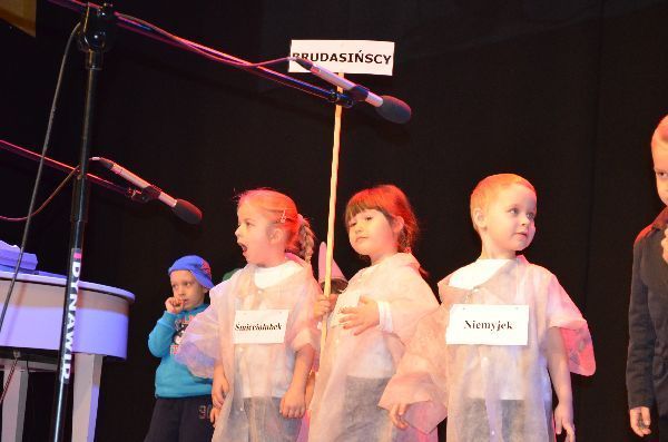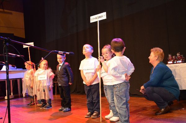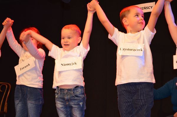 Zaraz po zakończeniu występów zerówek, na scenie pojawili się ich młodsi koledzy – 3 i 4 – latki. Maluchy nauczyły nas przede wszystkim tego, że należy trzymać formę o każdej porze roku, pokazały, jak dbać o czyste ręce, biały uśmiech i higienę całego ciała. Mieliśmy też okazję obejrzeć specjalny odcinek Familiady, w którym zmierzyły się dwie rodziny – Brudasińscy i Czyścińscy. W Familiadzie wygrała rodzina Czyścińskich, a w naszym konkursie grupy uplasowały się następująco: