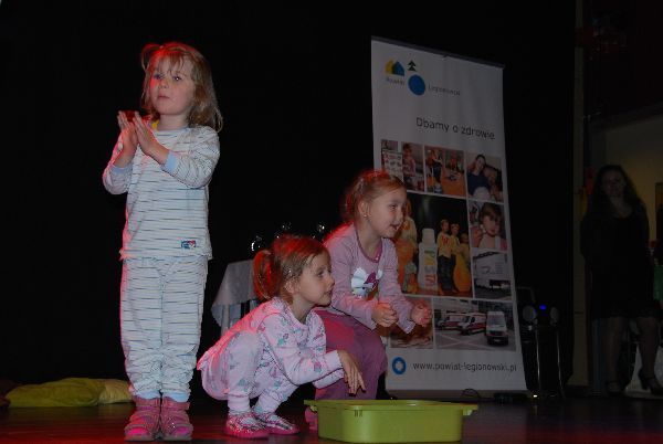 Najmłodsi mieszkańcy powiatu legionowskiego, podczas V edycji festiwalu Zdrowie w Bajce organizowanego przez Wydział Promocji i Rozwoju Społecznego Starostwa Powiatowego w Legionowie, Powiatową Stację Sanitarno-Epidemiologiczną w Legionowie oraz Niepubliczne Przedszkole „Przy Lesie” w Legionowie udowodnili, że wiedzą, co należy robić, aby być silnym i zdrowym. Przez trzy dni na scenie legionowskiego ratusza dzieci występowały w autorskich przedstawieniach na temat higienicznego trybu życia. Zgodnie z oczekiwaniami organizatorów maluchy podczas każdego występu prezentowały najwyższej jakości umiejętności aktorskie, taneczne i wokalne, przekazując przy okazji bardzo cenne przesłanie prozdrowotne. W sumie do konkursu zgłosiły się aż 43 grupy, które zostały podzielone na cztery kategorie: Przedszkola 3-4 lata, Przedszkola 5 lat, Klasy „0” oraz Klasy I-III.